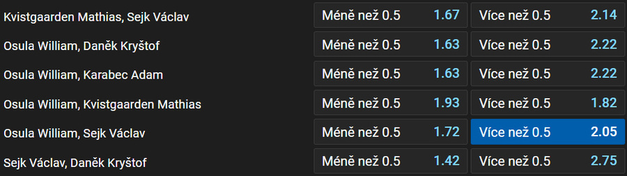 - Střelec gólu: Osula 2,80 | Kvistgaarden 3,00 | Bech 3,40