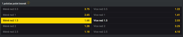 TIP: V první půli padne méně než 1,5 gólu v kurzu 1,68